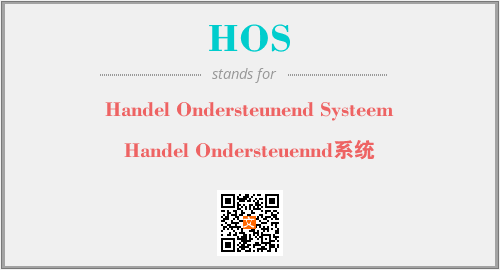 英文缩略词“HOS”经常作为“Handel Ondersteunend Systeem”的英文缩写来使用,中文表示:“Handel Ondersteuennd系统”。本文将详细介绍英文缩写词HOS所代表英文单词,其对应的中文拼音、详细解释以及在英语中的流行度。此外,还有关于缩略词HOS的分类、应用领域及相关应用示例等。