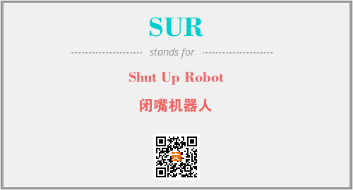 以上为Shut Up Robot英文缩略词SUR的中文解释,以及该英文缩写在英语的流行度、分类和应用领域方面的信息。
