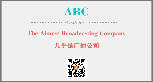 以上为The Almost Broadcasting Company英文缩略词ABC的中文解释,以及该英文缩写在英语的流行度、分类和应用领域方面的信息。