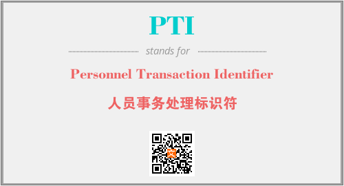 英文缩略词“PTI”经常作为“Personnel Transaction Identifier”的英文缩写来使用,中文表示:“人员事务处理标识符”。本文将详细介绍英文缩写词PTI所代表英文单词,其对应的中文拼音、详细解释以及在英语中的流行度。此外,还有关于缩略词PTI的分类、应用领域及相关应用示例等。