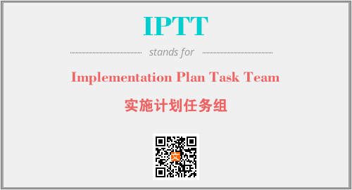 上述内容是“Implementation Plan Task Team”作为“IPTT”的缩写,解释为“实施计划任务组”时的信息,以及英文缩略词IPTT所代表的英文单词,其对应的中文拼音、详细解释以及在英文中的流行度和相关分类、应用领域及应用示例等。