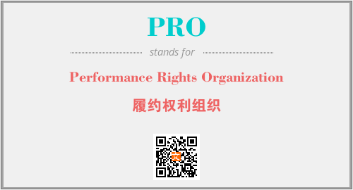 以上为Performance Rights Organization英文缩略词PRO的中文解释,以及该英文缩写在英语的流行度、分类和应用领域方面的信息。