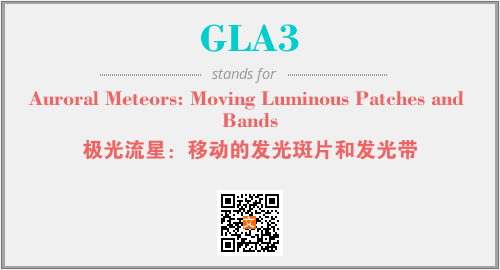 上述内容是“Auroral Meteors: Moving Luminous Patches and Bands”作为“GLA3”的缩写,解释为“极光流星:移动的发光斑片和发光带”时的信息,以及英文缩略词GLA3所代表的英文单词,其对应的中文拼音、详细解释以及在英文中的流行度和相关分类、应用领域及应用示例等。