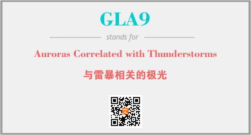 上述内容是“Auroras Correlated with Thunderstorms”作为“GLA9”的缩写,解释为“与雷暴相关的极光”时的信息,以及英文缩略词GLA9所代表的英文单词,其对应的中文拼音、详细解释以及在英文中的流行度和相关分类、应用领域及应用示例等。