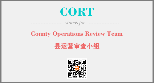 英文缩略词“CORT”经常作为“County Operations Review Team”的英文缩写来使用,中文表示:“县运营审查小组”。本文将详细介绍英文缩写词CORT所代表英文单词,其对应的中文拼音、详细解释以及在英语中的流行度。此外,还有关于缩略词CORT的分类、应用领域及相关应用示例等。