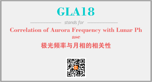 上述内容是“Correlation of Aurora Frequency with Lunar Phase”作为“GLA18”的缩写,解释为“极光频率与月相的相关性”时的信息,以及英文缩略词GLA18所代表的英文单词,其对应的中文拼音、详细解释以及在英文中的流行度和相关分类、应用领域及应用示例等。