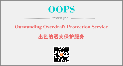 英文缩略词“OOPS”经常作为“Outstanding Overdraft Protection Service”的英文缩写来使用,中文表示:“出色的透支保护服务”。本文将详细介绍英文缩写词OOPS所代表英文单词,其对应的中文拼音、详细解释以及在英语中的流行度。此外,还有关于缩略词OOPS的分类、应用领域及相关应用示例等。