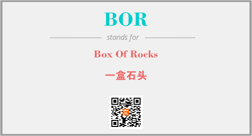上述内容是“Box Of Rocks”作为“BOR”的缩写,解释为“一盒石头”时的信息,以及英文缩略词BOR所代表的英文单词,其对应的中文拼音、详细解释以及在英文中的流行度和相关分类、应用领域及应用示例等。
