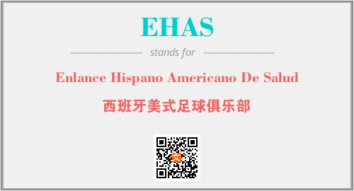 上述内容是“Enlance Hispano Americano De Salud”作为“EHAS”的缩写,解释为“西班牙美式足球俱乐部”时的信息,以及英文缩略词EHAS所代表的英文单词,其对应的中文拼音、详细解释以及在英文中的流行度和相关分类、应用领域及应用示例等。