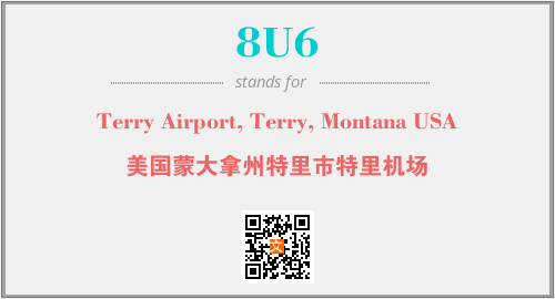 上述内容是“Terry Airport, Terry, Montana USA”作为“8U6”的缩写,解释为“美国蒙大拿州特里市特里机场”时的信息,以及英文缩略词8U6所代表的英文单词,其对应的中文拼音、详细解释以及在英文中的流行度和相关分类、应用领域及应用示例等。