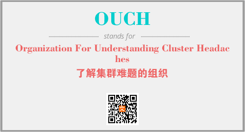 英文缩略词“OUCH”经常作为“Organization For Understanding Cluster Headaches”的英文缩写来使用,中文表示:“了解集群难题的组织”。本文将详细介绍英文缩写词OUCH所代表英文单词,其对应的中文拼音、详细解释以及在英语中的流行度。此外,还有关于缩略词OUCH的分类、应用领域及相关应用示例等。