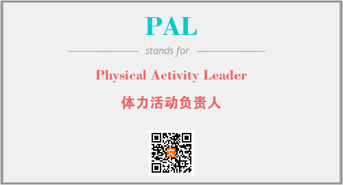 上述内容是“Physical Activity Leader”作为“PAL”的缩写,解释为“体力活动负责人”时的信息,以及英文缩略词PAL所代表的英文单词,其对应的中文拼音、详细解释以及在英文中的流行度和相关分类、应用领域及应用示例等。