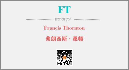上述内容是“Francis Thornton”作为“FT”的缩写,解释为“弗朗西斯·桑顿”时的信息,以及英文缩略词FT所代表的英文单词,其对应的中文拼音、详细解释以及在英文中的流行度和相关分类、应用领域及应用示例等。