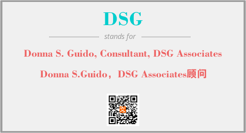 上述内容是“Donna S. Guido, Consultant, DSG Associates”作为“DSG”的缩写,解释为“Donna S.Guido,DSG Associates顾问”时的信息,以及英文缩略词DSG所代表的英文单词,其对应的中文拼音、详细解释以及在英文中的流行度和相关分类、应用领域及应用示例等。