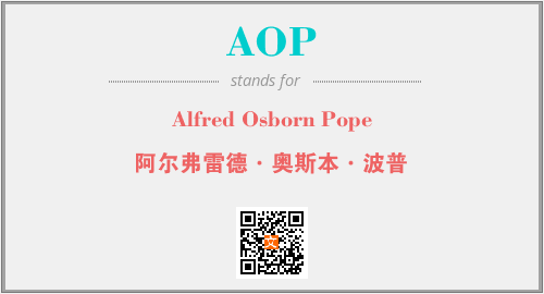 以上为Alfred Osborn Pope英文缩略词AOP的中文解释,以及该英文缩写在英语的流行度、分类和应用领域方面的信息。