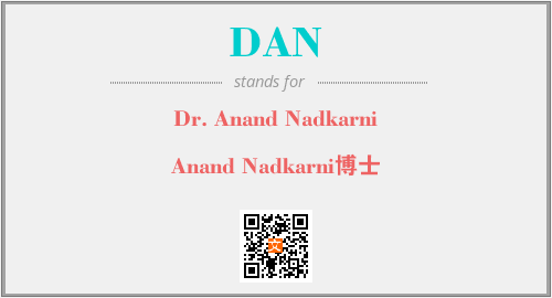 上述内容是“Dr. Anand Nadkarni”作为“DAN”的缩写,解释为“Anand Nadkarni博士”时的信息,以及英文缩略词DAN所代表的英文单词,其对应的中文拼音、详细解释以及在英文中的流行度和相关分类、应用领域及应用示例等。
