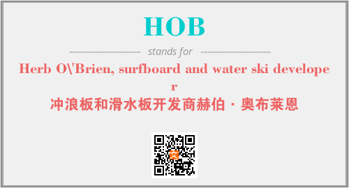 以上为Herb O\'Brien, surfboard and water ski developer英文缩略词HOB的中文解释,以及该英文缩写在英语的流行度、分类和应用领域方面的信息。