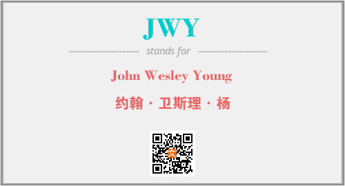 上述内容是“John Wesley Young”作为“JWY”的缩写,解释为“约翰·卫斯理·杨”时的信息,以及英文缩略词JWY所代表的英文单词,其对应的中文拼音、详细解释以及在英文中的流行度和相关分类、应用领域及应用示例等。