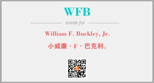 上述内容是“William F. Buckley, Jr.”作为“WFB”的缩写,解释为“小威廉·F·巴克利。”时的信息,以及英文缩略词WFB所代表的英文单词,其对应的中文拼音、详细解释以及在英文中的流行度和相关分类、应用领域及应用示例等。