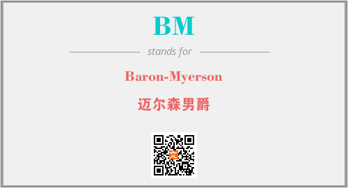 上述内容是“Baron-Myerson”作为“BM”的缩写,解释为“迈尔森男爵”时的信息,以及英文缩略词BM所代表的英文单词,其对应的中文拼音、详细解释以及在英文中的流行度和相关分类、应用领域及应用示例等。