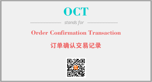 上述内容是“Order Confirmation Transaction”作为“OCT”的缩写,解释为“订单确认交易记录”时的信息,以及英文缩略词OCT所代表的英文单词,其对应的中文拼音、详细解释以及在英文中的流行度和相关分类、应用领域及应用示例等。