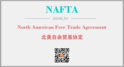 上述内容是“North American Free Trade Agreement”作为“NAFTA”的缩写,解释为“北美自由贸易协定”时的信息,以及英文缩略词NAFTA所代表的英文单词,其对应的中文拼音、详细解释以及在英文中的流行度和相关分类、应用领域及应用示例等。