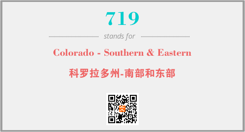 上述内容是“Colorado - Southern & Eastern”作为“719”的缩写,解释为“科罗拉多州-南部和东部”时的信息,以及英文缩略词719所代表的英文单词,其对应的中文拼音、详细解释以及在英文中的流行度和相关分类、应用领域及应用示例等。
