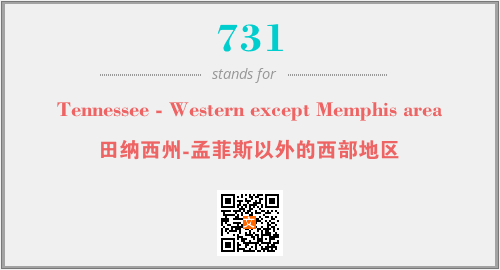 以上为Tennessee - Western except Memphis area英文缩略词731的中文解释,以及该英文缩写在英语的流行度、分类和应用领域方面的信息。