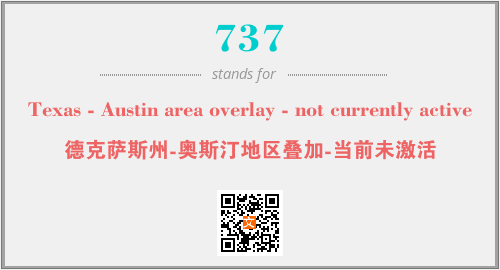 上述内容是“Texas - Austin area overlay - not currently active”作为“737”的缩写,解释为“德克萨斯州-奥斯汀地区叠加-当前未激活”时的信息,以及英文缩略词737所代表的英文单词,其对应的中文拼音、详细解释以及在英文中的流行度和相关分类、应用领域及应用示例等。