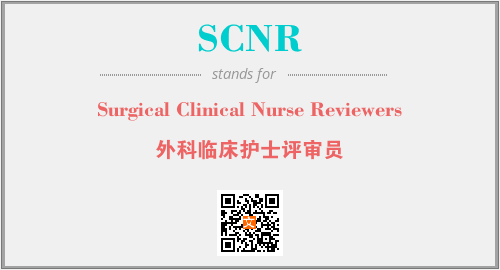 以上为Surgical Clinical Nurse Reviewers英文缩略词SCNR的中文解释,以及该英文缩写在英语的流行度、分类和应用领域方面的信息。