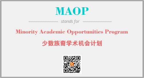 上述内容是“Minority Academic Opportunities Program”作为“MAOP”的缩写,解释为“少数族裔学术机会计划”时的信息,以及英文缩略词MAOP所代表的英文单词,其对应的中文拼音、详细解释以及在英文中的流行度和相关分类、应用领域及应用示例等。