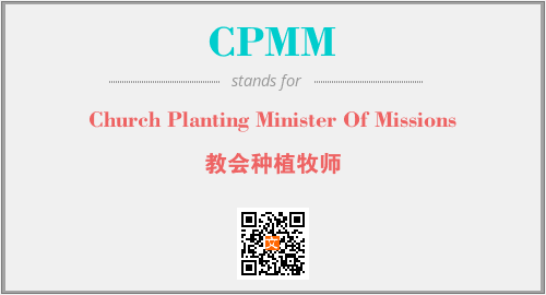 英文缩略词“CPMM”经常作为“Church Planting Minister Of Missions”的英文缩写来使用,中文表示:“教会种植牧师”。本文将详细介绍英文缩写词CPMM所代表英文单词,其对应的中文拼音、详细解释以及在英语中的流行度。此外,还有关于缩略词CPMM的分类、应用领域及相关应用示例等。