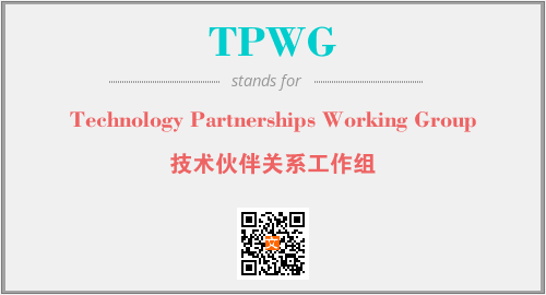 以上为Technology Partnerships Working Group英文缩略词TPWG的中文解释,以及该英文缩写在英语的流行度、分类和应用领域方面的信息。