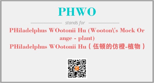 以上为PHiladelphus WOotonii Hu (Wooton\'s Mock Orange - plant)英文缩略词PHWO的中文解释,以及该英文缩写在英语的流行度、分类和应用领域方面的信息。