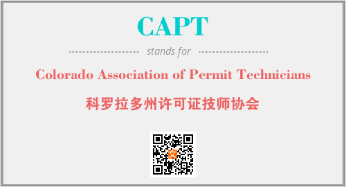 上述内容是“Colorado Association of Permit Technicians”作为“CAPT”的缩写,解释为“科罗拉多州许可证技师协会”时的信息,以及英文缩略词CAPT所代表的英文单词,其对应的中文拼音、详细解释以及在英文中的流行度和相关分类、应用领域及应用示例等。