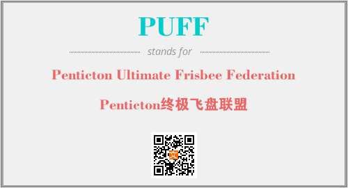 上述内容是“Penticton Ultimate Frisbee Federation”作为“PUFF”的缩写,解释为“Penticton终极飞盘联盟”时的信息,以及英文缩略词PUFF所代表的英文单词,其对应的中文拼音、详细解释以及在英文中的流行度和相关分类、应用领域及应用示例等。