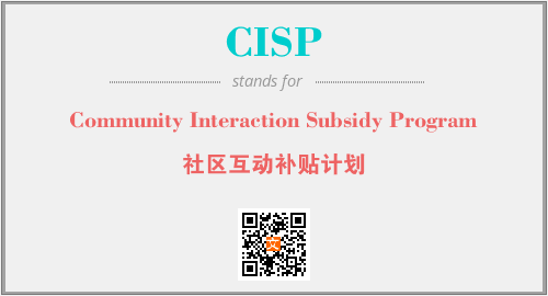 英文缩略词“CISP”经常作为“Community Interaction Subsidy Program”的英文缩写来使用,中文表示:“社区互动补贴计划”。本文将详细介绍英文缩写词CISP所代表英文单词,其对应的中文拼音、详细解释以及在英语中的流行度。此外,还有关于缩略词CISP的分类、应用领域及相关应用示例等。