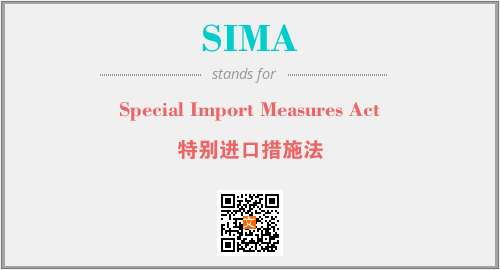 上述内容是“Special Import Measures Act”作为“SIMA”的缩写,解释为“特别进口措施法”时的信息,以及英文缩略词SIMA所代表的英文单词,其对应的中文拼音、详细解释以及在英文中的流行度和相关分类、应用领域及应用示例等。