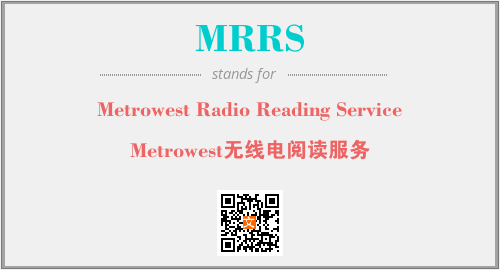 英文缩略词“MRRS”经常作为“Metrowest Radio Reading Service”的英文缩写来使用,中文表示:“Metrowest无线电阅读服务”。本文将详细介绍英文缩写词MRRS所代表英文单词,其对应的中文拼音、详细解释以及在英语中的流行度。此外,还有关于缩略词MRRS的分类、应用领域及相关应用示例等。