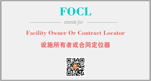 上述内容是“Facility Owner Or Contract Locator”作为“FOCL”的缩写,解释为“设施所有者或合同定位器”时的信息,以及英文缩略词FOCL所代表的英文单词,其对应的中文拼音、详细解释以及在英文中的流行度和相关分类、应用领域及应用示例等。