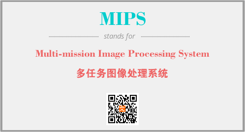 上述内容是“Multi-mission Image Processing System”作为“MIPS”的缩写,解释为“多任务图像处理系统”时的信息,以及英文缩略词MIPS所代表的英文单词,其对应的中文拼音、详细解释以及在英文中的流行度和相关分类、应用领域及应用示例等。