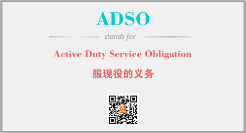 以上为Active Duty Service Obligation英文缩略词ADSO的中文解释,以及该英文缩写在英语的流行度、分类和应用领域方面的信息。
