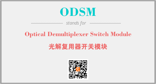上述内容是“Optical Demultiplexer Switch Module”作为“ODSM”的缩写,解释为“光解复用器开关模块”时的信息,以及英文缩略词ODSM所代表的英文单词,其对应的中文拼音、详细解释以及在英文中的流行度和相关分类、应用领域及应用示例等。