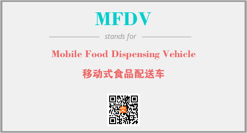 上述内容是“Mobile Food Dispensing Vehicle”作为“MFDV”的缩写,解释为“移动式食品配送车”时的信息,以及英文缩略词MFDV所代表的英文单词,其对应的中文拼音、详细解释以及在英文中的流行度和相关分类、应用领域及应用示例等。