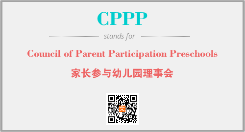 上述内容是“Council of Parent Participation Preschools”作为“CPPP”的缩写,解释为“家长参与幼儿园理事会”时的信息,以及英文缩略词CPPP所代表的英文单词,其对应的中文拼音、详细解释以及在英文中的流行度和相关分类、应用领域及应用示例等。