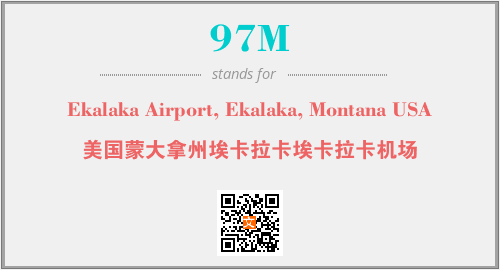 上述内容是“Ekalaka Airport, Ekalaka, Montana USA”作为“97M”的缩写,解释为“美国蒙大拿州埃卡拉卡埃卡拉卡机场”时的信息,以及英文缩略词97M所代表的英文单词,其对应的中文拼音、详细解释以及在英文中的流行度和相关分类、应用领域及应用示例等。