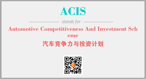 英文缩略词“ACIS”经常作为“Automotive Competitiveness And Investment Scheme”的英文缩写来使用,中文表示:“汽车竞争力与投资计划”。本文将详细介绍英文缩写词ACIS所代表英文单词,其对应的中文拼音、详细解释以及在英语中的流行度。此外,还有关于缩略词ACIS的分类、应用领域及相关应用示例等。