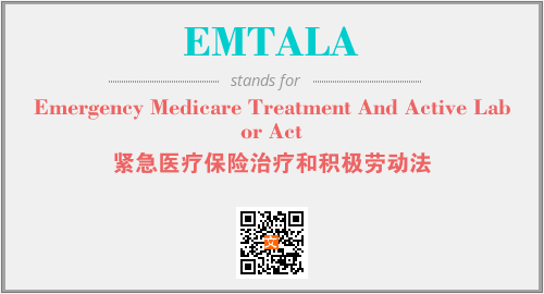 上述内容是“Emergency Medicare Treatment And Active Labor Act”作为“EMTALA”的缩写,解释为“紧急医疗保险治疗和积极劳动法”时的信息,以及英文缩略词EMTALA所代表的英文单词,其对应的中文拼音、详细解释以及在英文中的流行度和相关分类、应用领域及应用示例等。