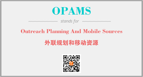 上述内容是“Outreach Planning And Mobile Sources”作为“OPAMS”的缩写,解释为“外联规划和移动资源”时的信息,以及英文缩略词OPAMS所代表的英文单词,其对应的中文拼音、详细解释以及在英文中的流行度和相关分类、应用领域及应用示例等。