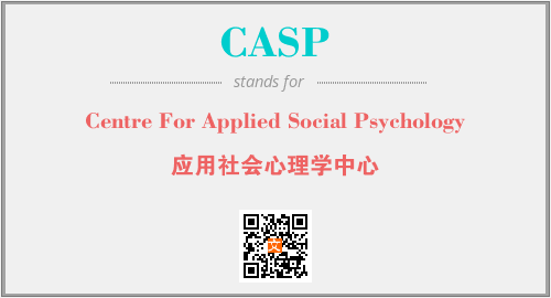 上述内容是“Centre For Applied Social Psychology”作为“CASP”的缩写,解释为“应用社会心理学中心”时的信息,以及英文缩略词CASP所代表的英文单词,其对应的中文拼音、详细解释以及在英文中的流行度和相关分类、应用领域及应用示例等。